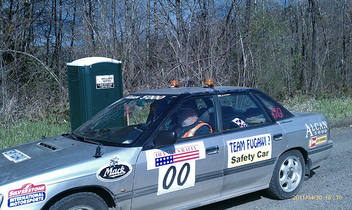 It was obvious that we could not ride our bikes any further. We had ridden for 23 hours, we had covered 525 kilometers, and now we were stuck. Ryan lay down by the roadside, taking a well-deserved nap. I borrowed Hahn’s camera and took photos of rally cars for my children. One by one, they came roaring down the road. As they stopped, gravel was falling out of their wheels. Funny that rally drivers and randonneurs enjoy the same backroads...