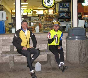 At last, we pull into Starbucks. It's 7:12 and we offer ourselves congratulations all around. Jan has pulled at the front of our paceline for the last 150 km. We go inside to have our cards signed and the same employee who saw us off almost 24 hours ago is on duty. He offers congratulations and ice water. Then the consequences of the ride start to set in. I'm soon throwing up in the garbage can, and Ryan is lying on the ground shaking. Jan makes multiple checks to be sure we aren't in dangerous distress, but there's little he can do except wait for us to get through the worst of things.