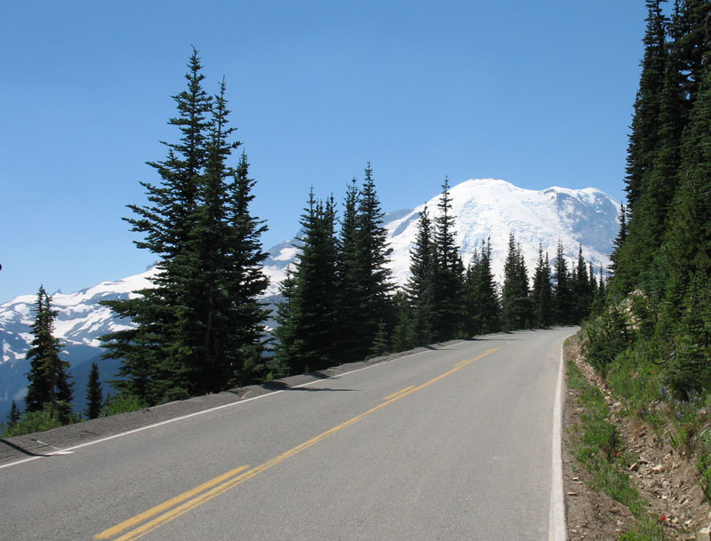 The road to Sunrise, with Mount Rainier in the background.